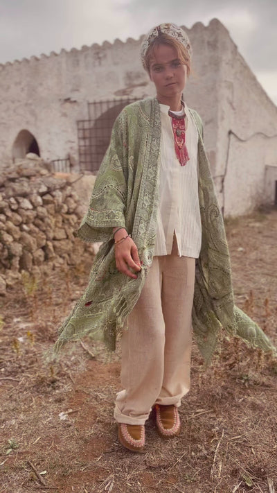 Nuestro exquisito Poncho Amoha es de lana natural bordado a mano destaca por su calidad artesanal y la auténtica esencia de las Islas Baleares. Cada pieza es única, están hechos a mano con cuidado y detalle, lo que garantiza una prenda exclusiva en tu guardarropa. El bordado a mano agrega un toque de elegancia y distinción a este poncho, haciéndolo perfecto para quienes aprecian la artesanía tradicional y la belleza de las prendas únicas. Con la esencia balear impregnada en cada puntada, este poncho es una verdadera obra de arte que refleja la dedicación y el talento de los artesanos locales. ¡Un complemento imprescindible para aquellos que buscan sofisticación y autenticidad en sus outfits!
